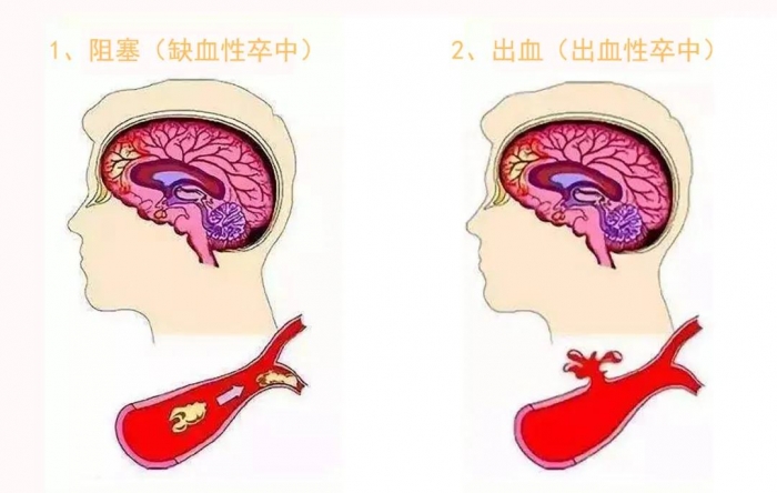 按照造成大脑血供异常原因的不同,卒中分为两种类型: