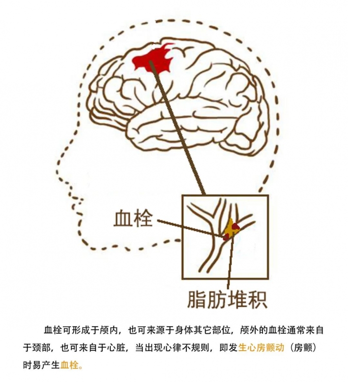 缺血性卒中主要是由血管内脂肪淤积所致。脂肪淤积容易形成血栓阻塞血管,就像心梗。这就是为什么卒中也常被称为脑梗。