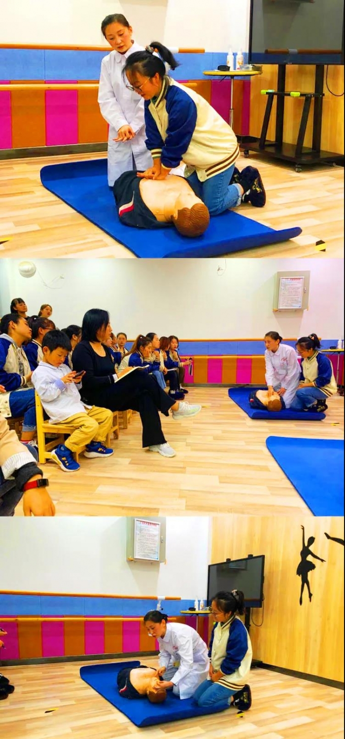 学会心肺复苏能帮到很多人。也许某一天在马路上,或者在某个公共场所,有人倒在地上,大多数人想到的是打120,但更重要的是在急救车来之前,在黄金时间4——6分钟内给患者急救,做心肺复苏。心肺复苏作为一种基本急救技术在普通公众中进行普及有其非常重要的意义,老师们积极在模拟人上进行练习,医护人员对老师们进行手把手的指导。