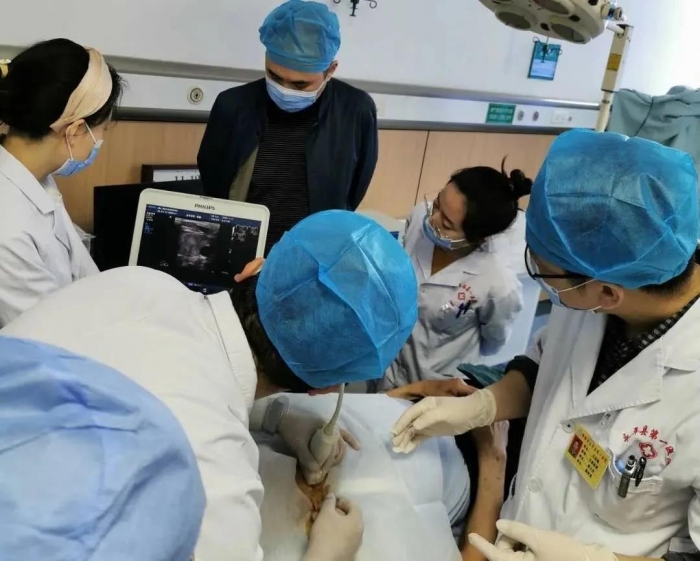 在本次穿刺术前,我科室对甲状腺结节进行了精确分类,为临床医生对本次穿刺术是否进行提供了依据。本次穿刺术在孙老师的超声引导以及省人民医院专家团的联手配合下顺利进行。在超声的引导下,穿刺能够更好的定位,提高病理检查的准确性。